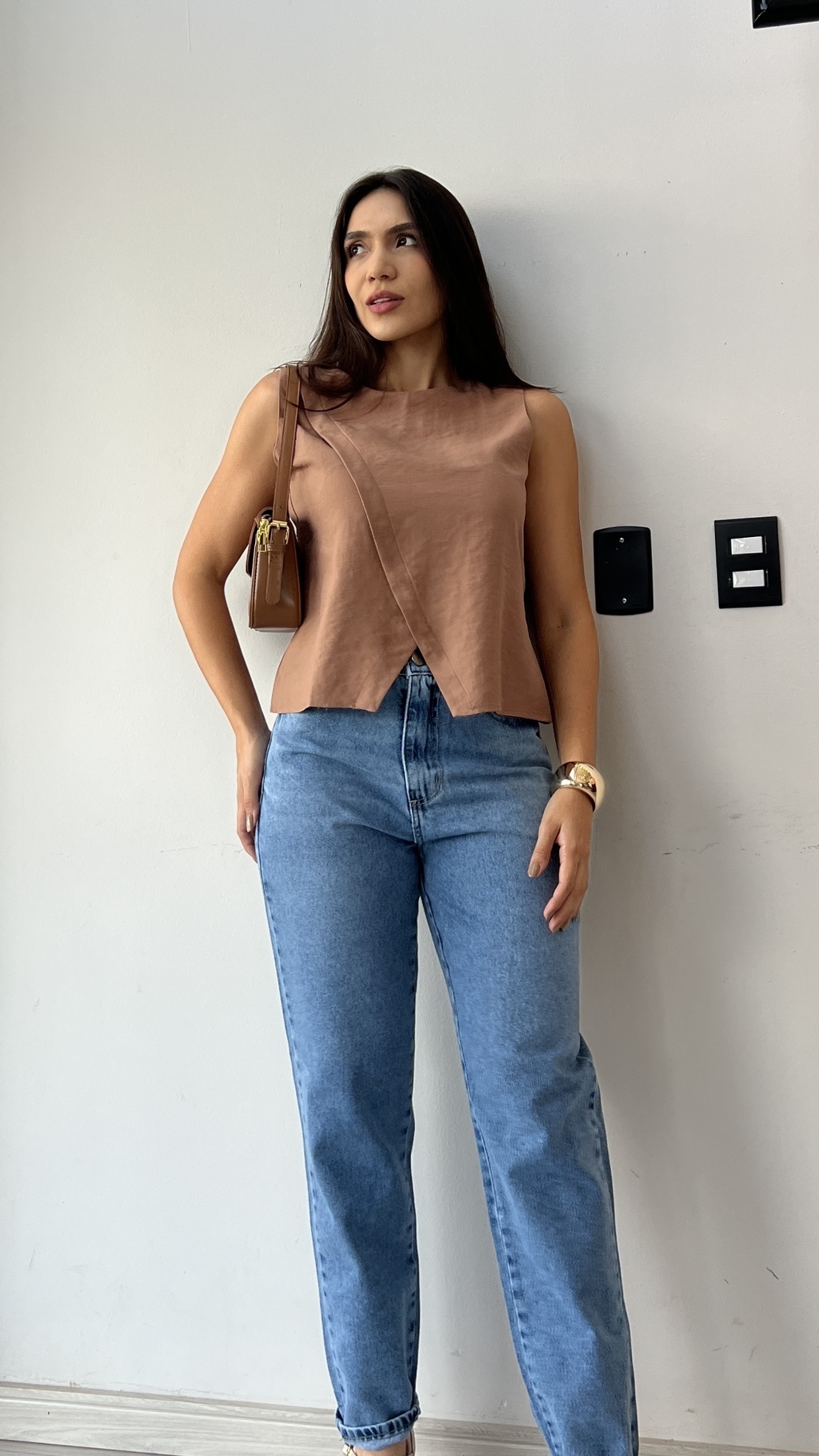 Calça Jeans modelo mom, confeccionada em modelo jeans com puídos. Possui fechamento por botão e ziper no entremeio, bolsos na frente e atrás, cos com passantes, acabamento no tom e contura contrastante.
