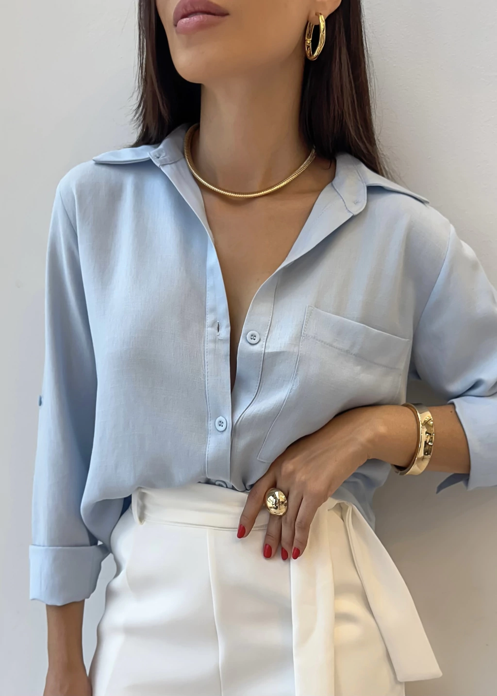 Essa camisa de viscolinho é o equilíbrio perfeito entre leveza e sofisticação. O tecido é super confortável, tem um caimento incrível e aquele toque natural que a gente ama. Uma peça versátil, perfeita pra compor looks do dia a dia ou produções mais arrumadas. Possui martingale na manga para dar mais charme e praticidade!