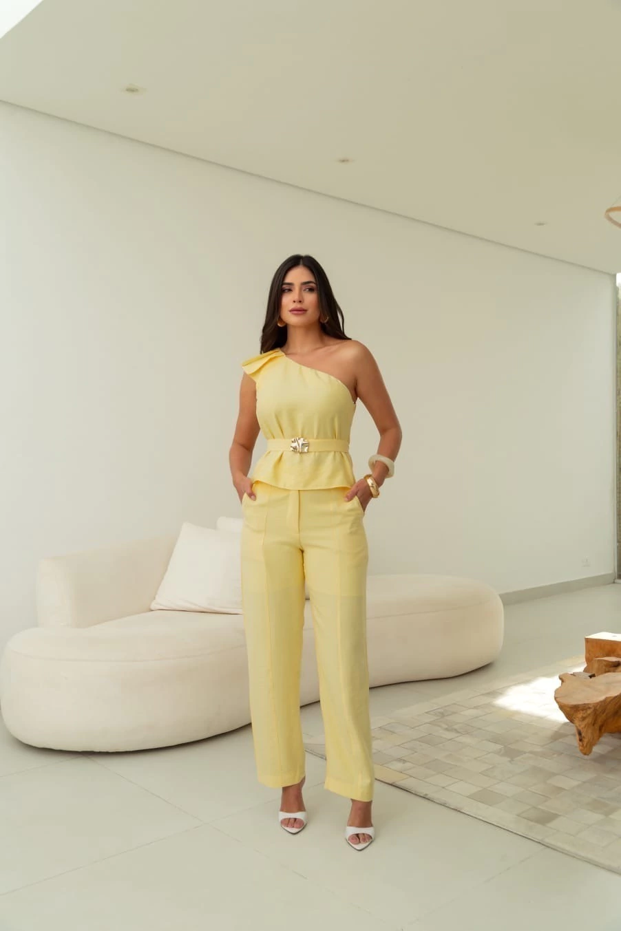 Conjunto Ombro Único Amarelo – Moderno, elegante e cheio de estilo! Perfeito para quem quer um look leve, sofisticado e versátil. Modelagem impecável, confortável e essencial para quem ama praticidade e versatilidade!