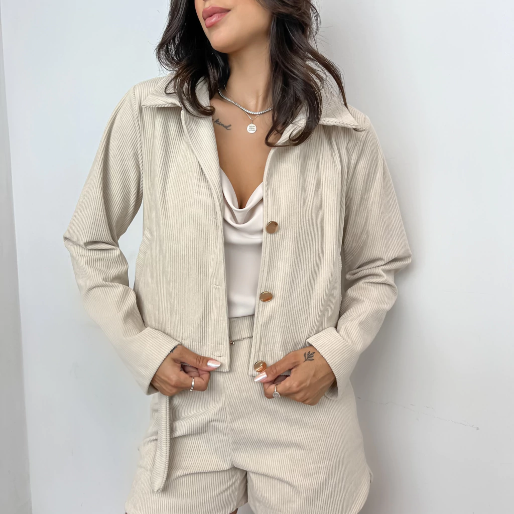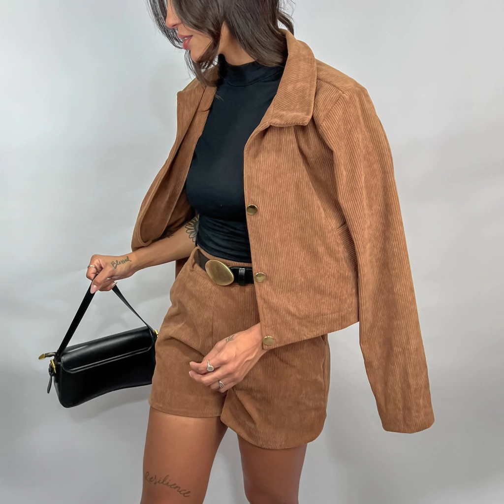 Conjunto Taci é a perfeita combinaçao para um casual chic. Confeccionado em veludo cotelê, ele proporciona conforto e estilo. Super versátil, as peças podem ser usadas separadamente, rendendo vários looks.