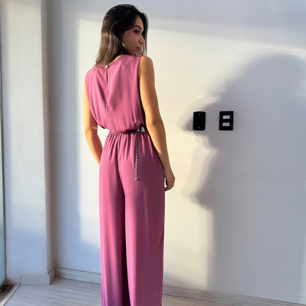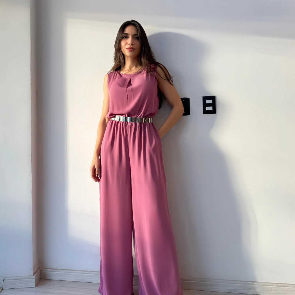 Nosso macacão Evelyn é confeccionado em tecido leve e fluido, proporcionando caimento impecável e máximo conforto. Com design sem mangas e decote discreto, ele é ideal para ocasiões que pedem elegância com modernidade.