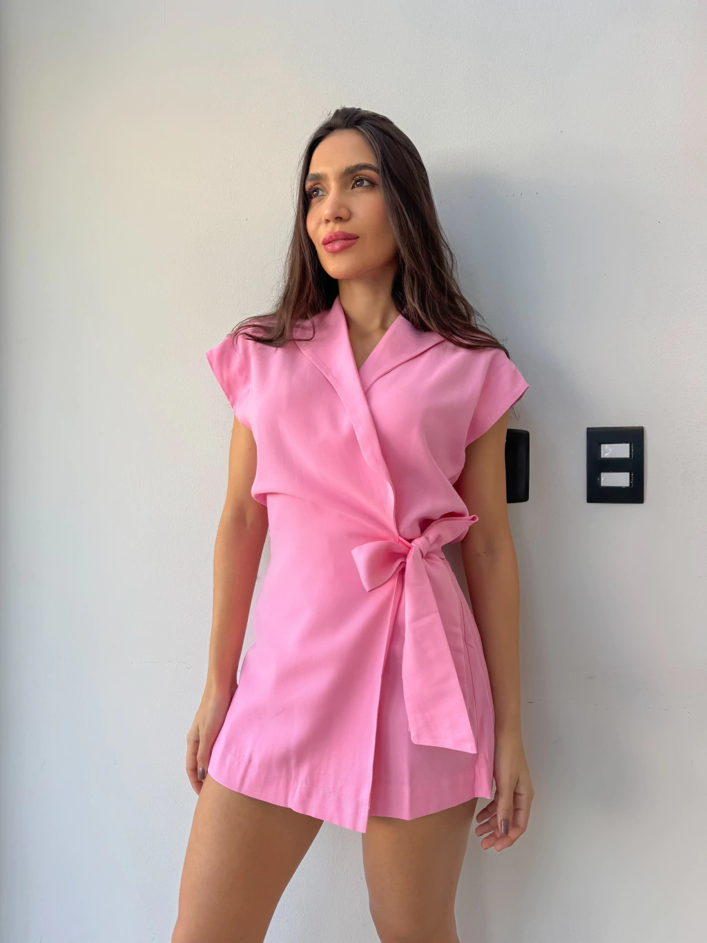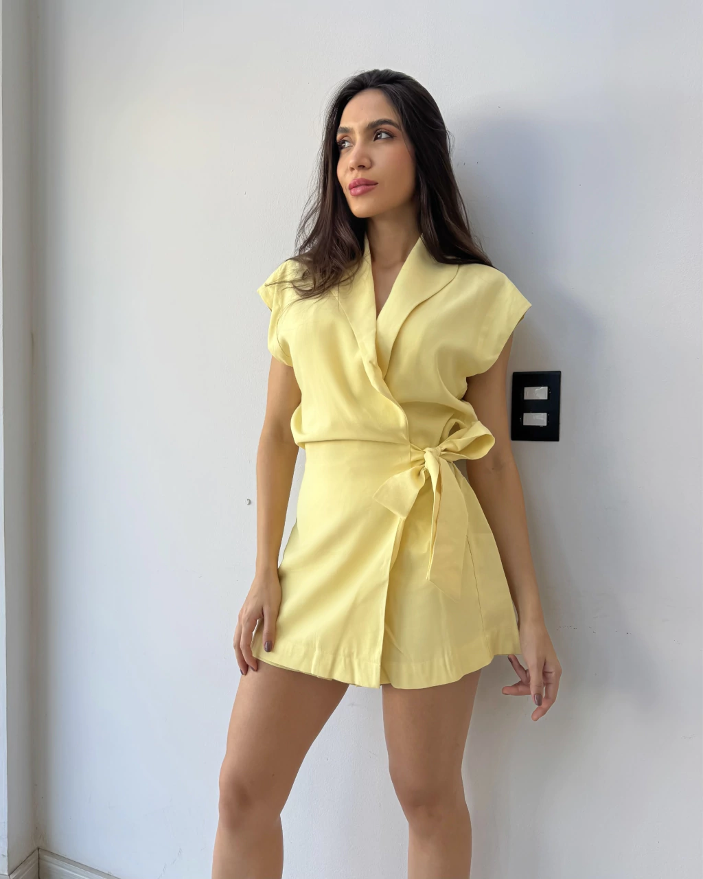 O macaquinho Bella é a escolha ideal para quem busca estilo, conforto e praticidade em uma única peça. Com modelagem tipo chemise curta, ele traz um design moderno com amarração frontal que valoriza a silhueta de forma delicada e sofisticada. Caimento perfeito e toque macio, é uma peça versátil que transita com facilidade do dia a dia ao look de final de semana.