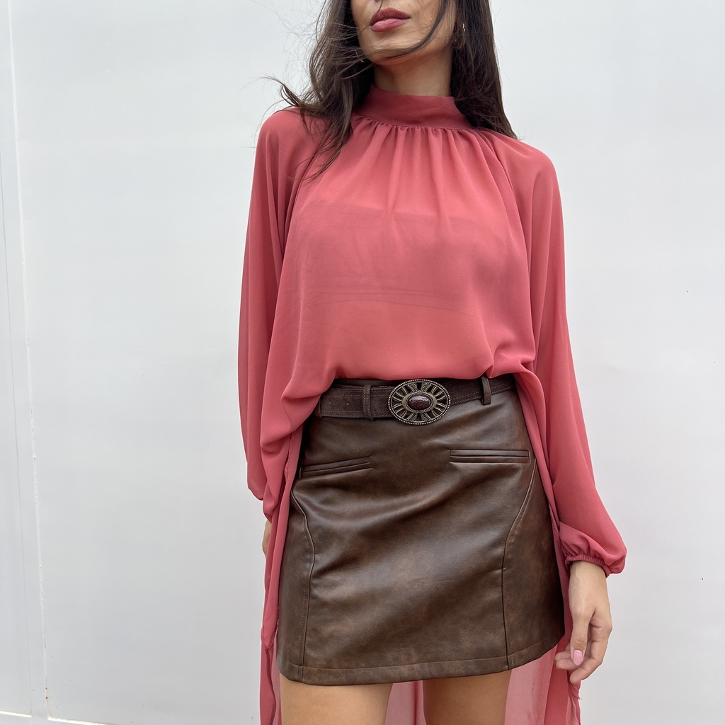 Confeccionada em couro ecológico marrom, com acabamento que imita desgaste natural do material, conferindo um vinsual mais rustico e estiloso.