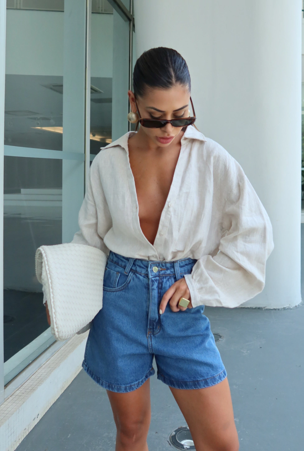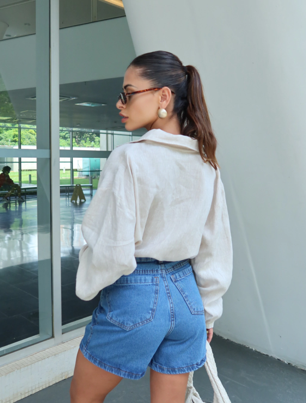 O Shorts Jeans Mom traz um ar vintage ao look, com a barra ajustada, cintura alta e soltinho na região do quadril e pernas. Bastante confortavel para o dia a dia e uma opção muito estilosa.