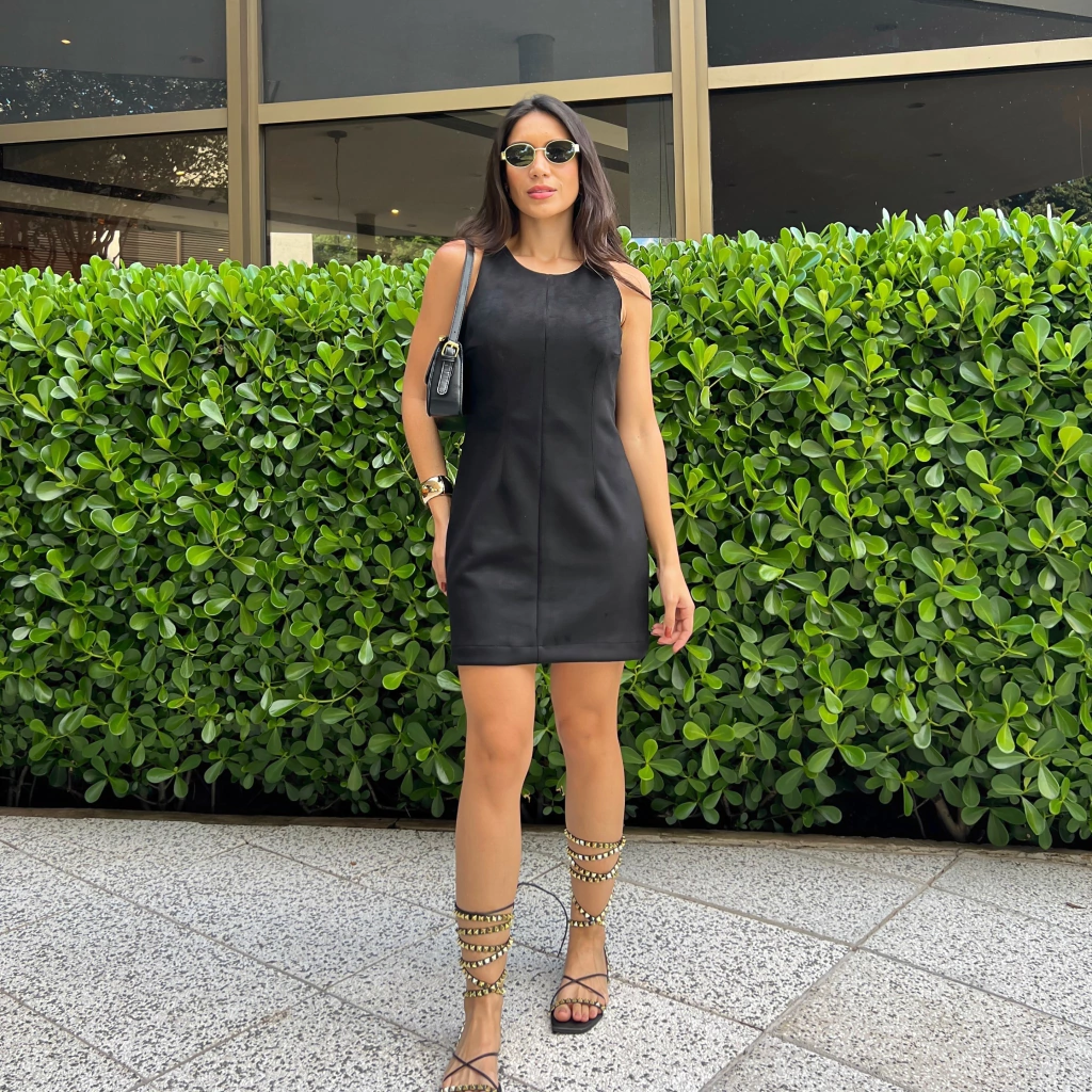 Vestido tubinho em suede, comprimento e caimento perfeito! Uma peça necessária e coringa, que permite várias propostas.