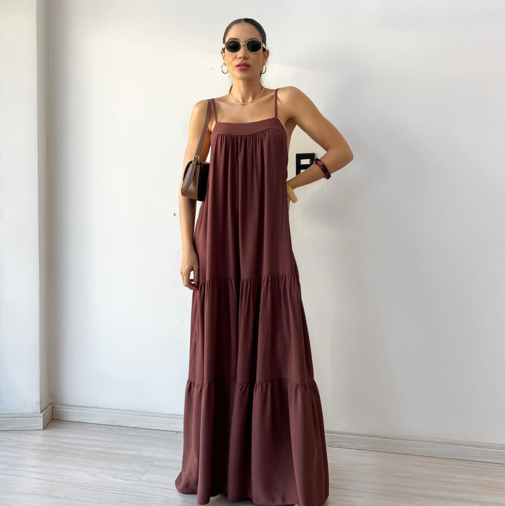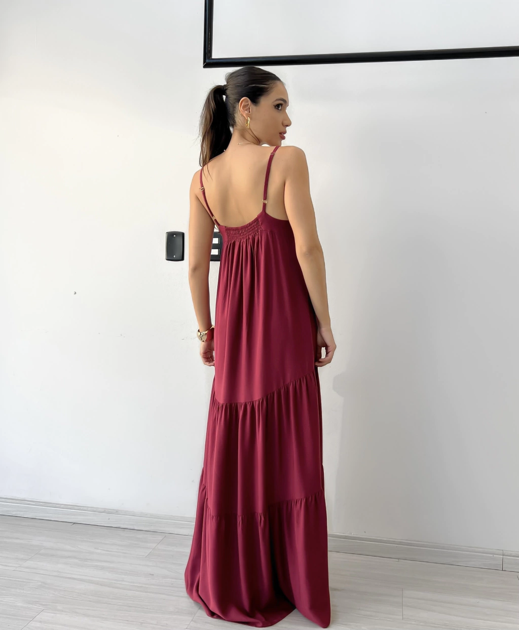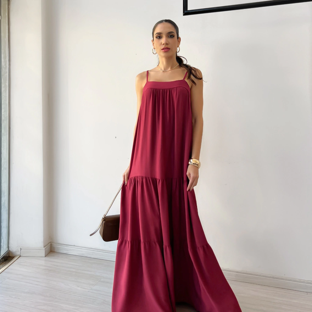 Este vestido longo é a escolha perfeita para quem busca elegância com conforto. Com alças finas e modelagem solta, a peça possui caimento leve e fluido. Versátil, pode ser usado tanto em produções casuais quanto em ocasiões mais especiais, bastando ajustar os acessórios.